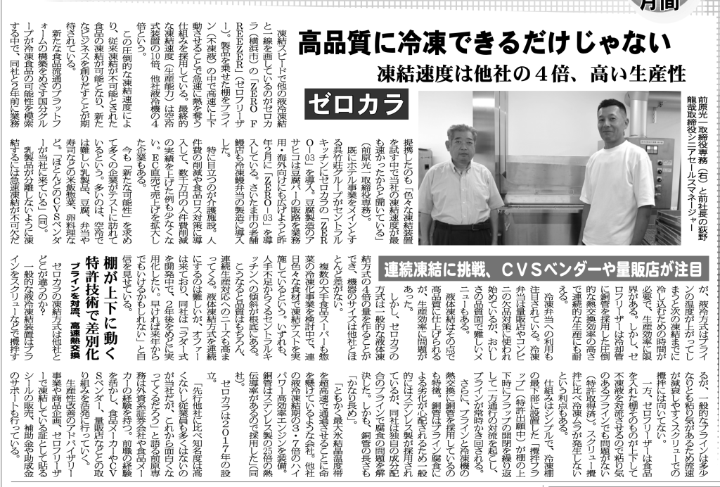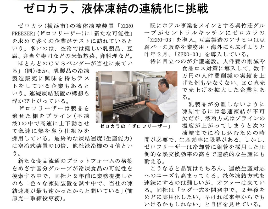 ゼロカラ株式会社(本社:横浜市)の液体凍結装置「ZERO FREEZER(ゼロフリーザー)」が掲載されました。