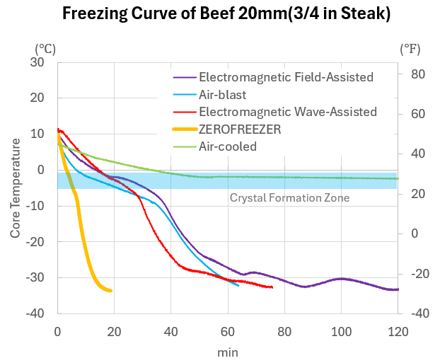 ZERO FREEZER rapidly passes through this critical temperature zone in an instant.